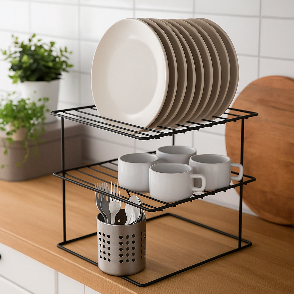 Kit 2 Organizadores de Pratos Armário Prateleira Cozinha Louça Não Enferruja Aço Resistente