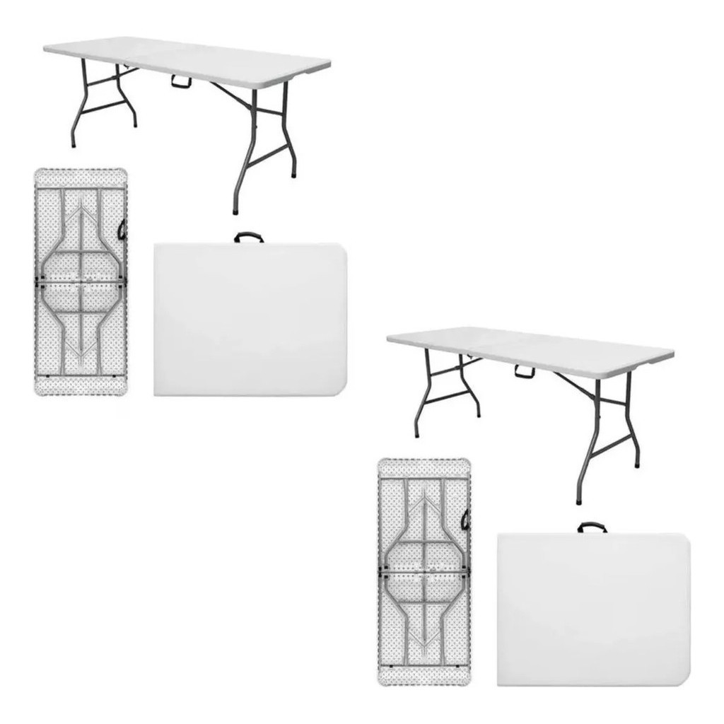 Kit 2 Mesas Dobravel Vira Maleta Portatil 1,80m Camping