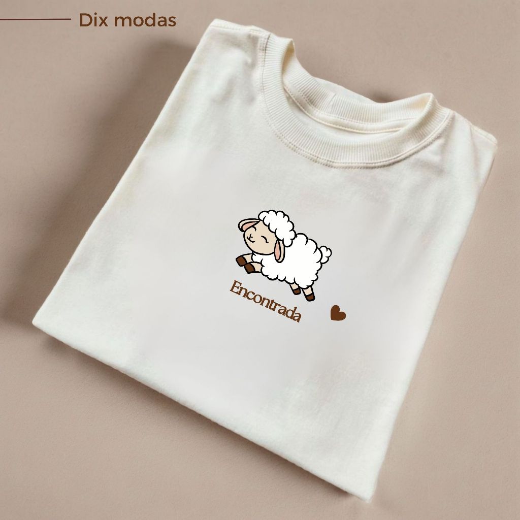 Camiseta T-Shirt 100% algodão Feminina Baby Look Moda Evangélica "Ovelha Encontrada"