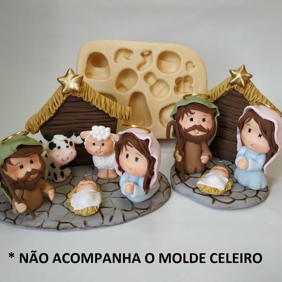 Molde de Silicone para Artesanato Presépio - Peças de 4 a 7 cm - Natal; Religião