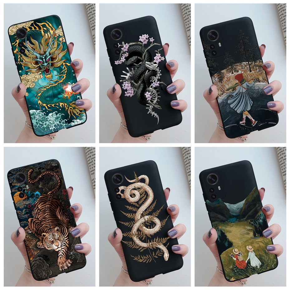Xiaomi Mi 12 12x 12 pro Lite Capa Preta De Animais Dragão Estampa De Cobra Macia Fosca anti-Queda Telefone
