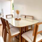 Conjunto Mesa Oval 6 Cadeiras de Jantar Tela no Enconto 100% MDF Off White Dalla Costa