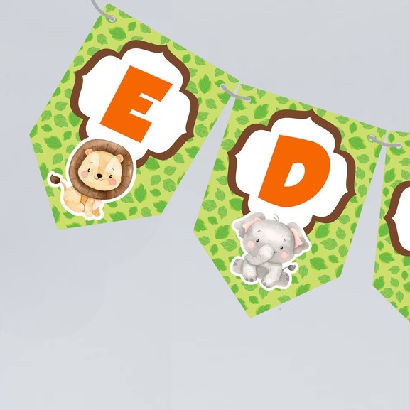 Bandeirola 12x18cm (COMPRE POR LETRA) com cordão tema safari Baby Aquarela, floresta, selva bandeiras