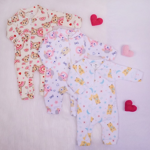 macacão para bebê em soft combo 03 peças quentindo rn ao gg Estampas sortidas MENINA