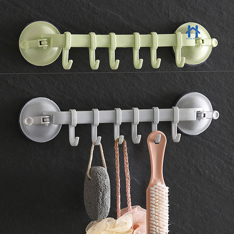 Suporte 6 Ganchos 2 Ventosas Forte Parede Azulejo Multiuso para benheiro /cozinha cor branco