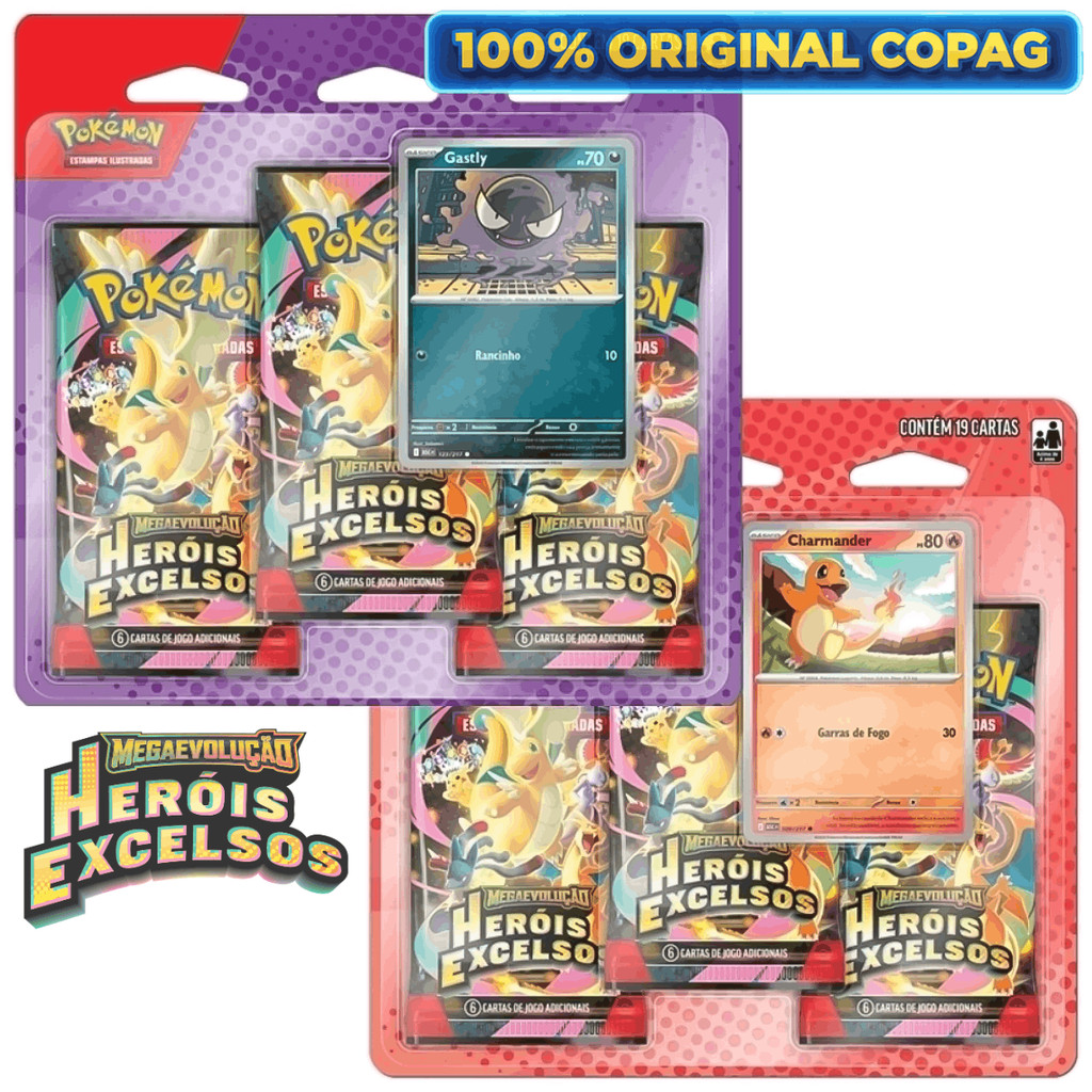 Pokemon Blister Triplo Megaevolução 2.5 - Heróis Excelsos - Gastly e Charmander Copag - 36442