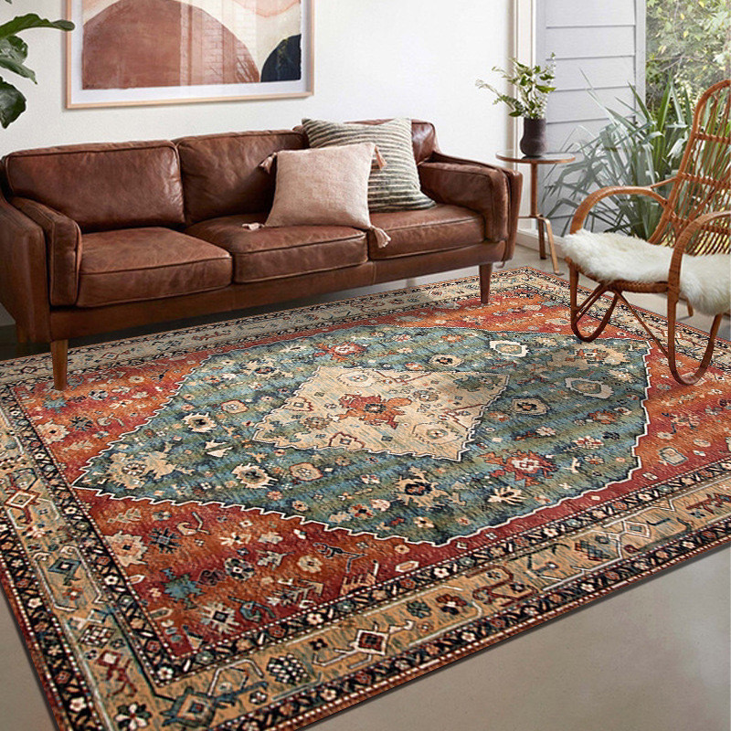 Tapete de Estilo Étnico Persa para Sala de Estar, Resistente a Manchas e Desgaste, Tapete para Sofá e Mesa de Café