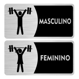 Kit Plaquinhas Decorativas Personalizado Banheiro Feminino E Masculino Para Academia Fitness 40x10 PVC 1MM