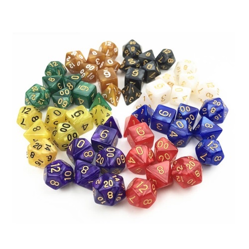 Jogo Kit 7 Dados D4 D6 D8 D10 D10% D12 D20 RPG Dungeons And Dragons D&D De Mesa Tabuleiro Perolados Conjunto Poliédricos