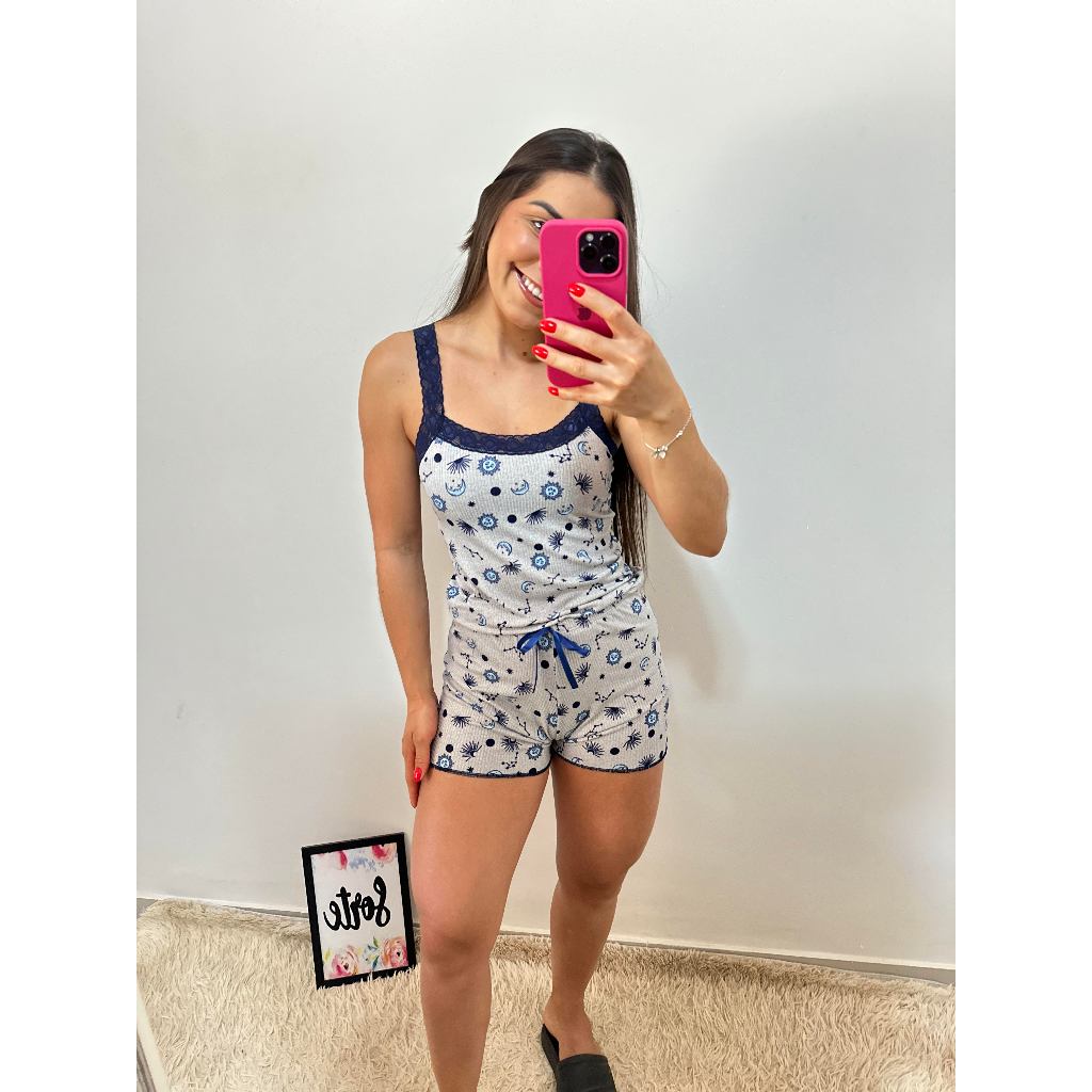 KIT Com 3 Baby Doll Plus Size com Alça Reguladora Short Doll Conjunto Feminino Pijama Estampado Fresquinho