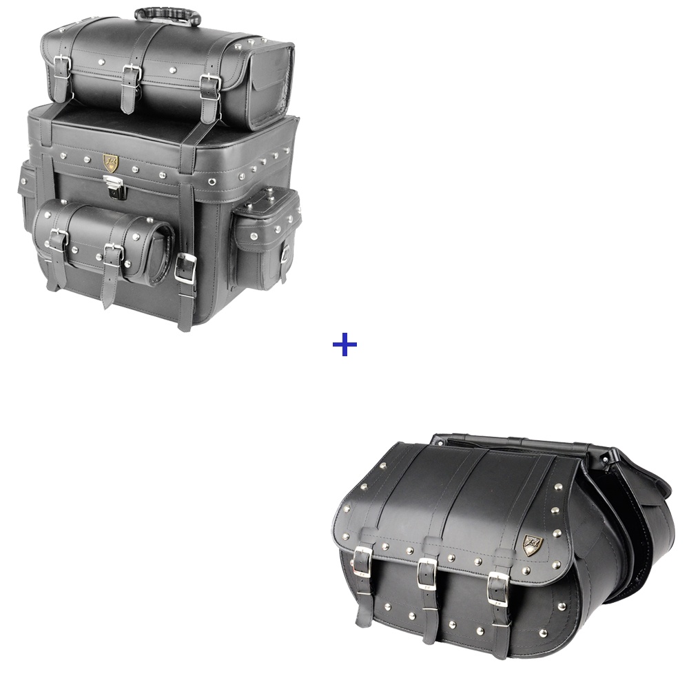 Kit Viagem Alforge Traseiro 62 Litros C/ Chave Tranca Couro Sintético C/ Cravos + Alforge Lateral 3F 40 Litros Couro