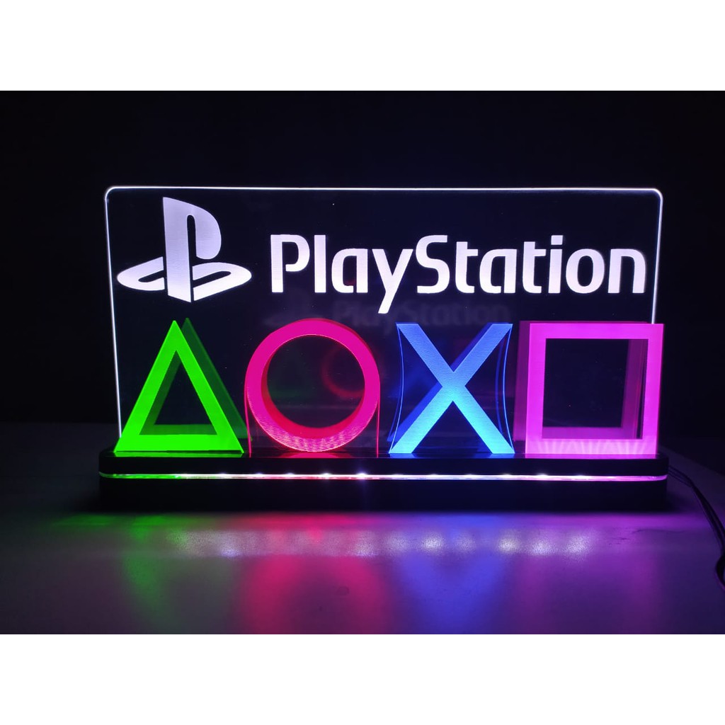 Luminária Led Gamer Símbolos e Logotipo Playstation
