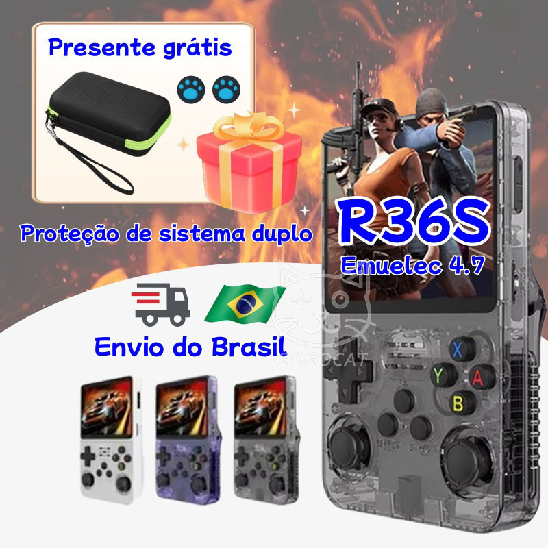 Console de Jogos Portátil R36S com mais de 15000 Jogos, Linux, 64GB, Tela IPS de 3.5 Polegadas, Pronta Entrega