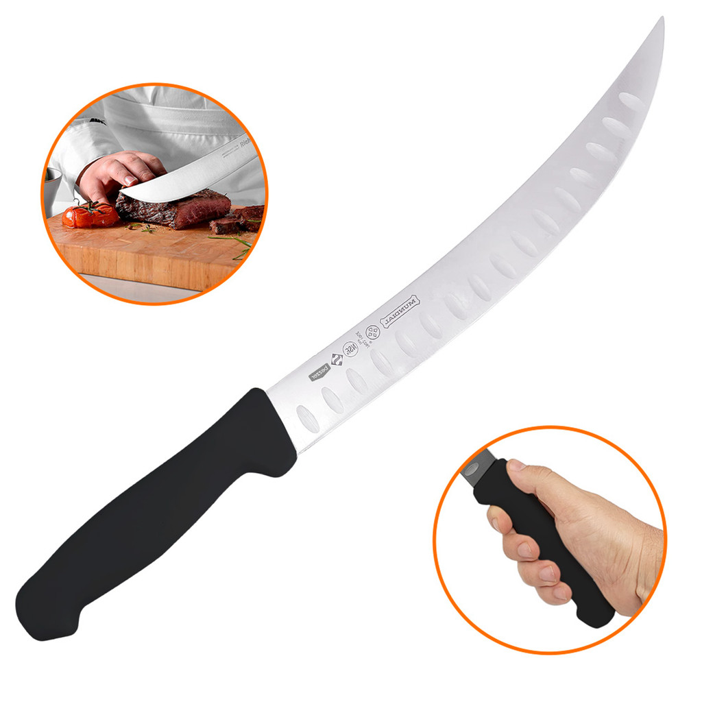 Faca Steak Cut Aço Inox 10” Lâmina 25cm Chef Curvada Profissional Churrasco Cabo Preto