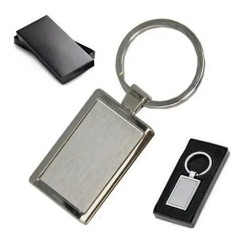 Chaveiro Retangular Metal Escovado Inox Kit 30 Unidades