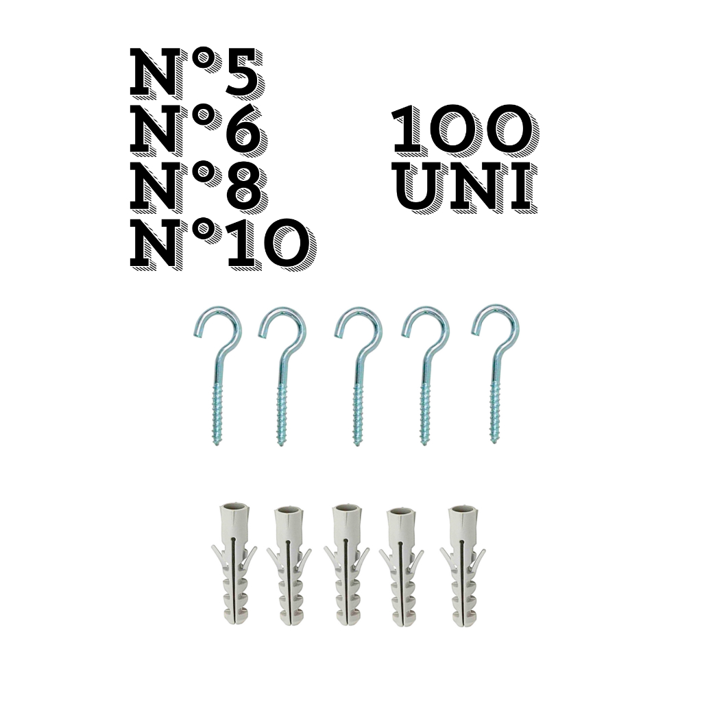 kit GANCHO e BUCHA 100 unidades cada N 5. 6. 8 e 10