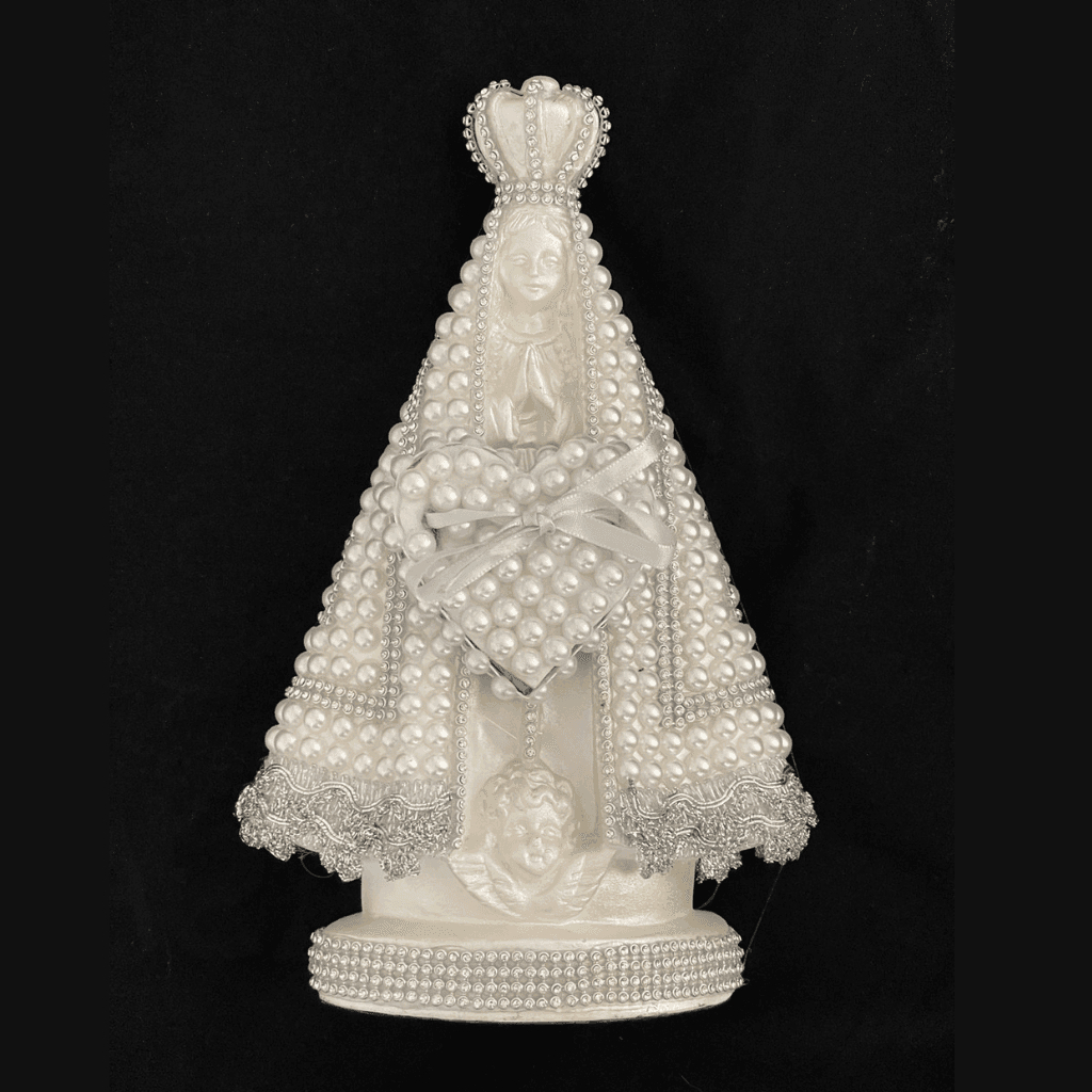 Porta Aliança Nossa Senhora em Pérolas Branco 25cm