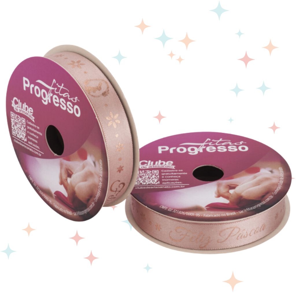 Fita de Cetim Feliz Páscoa Cor 446 - 15mm - 01 unidade - 10 metros - Progresso - Kafe Embalagens