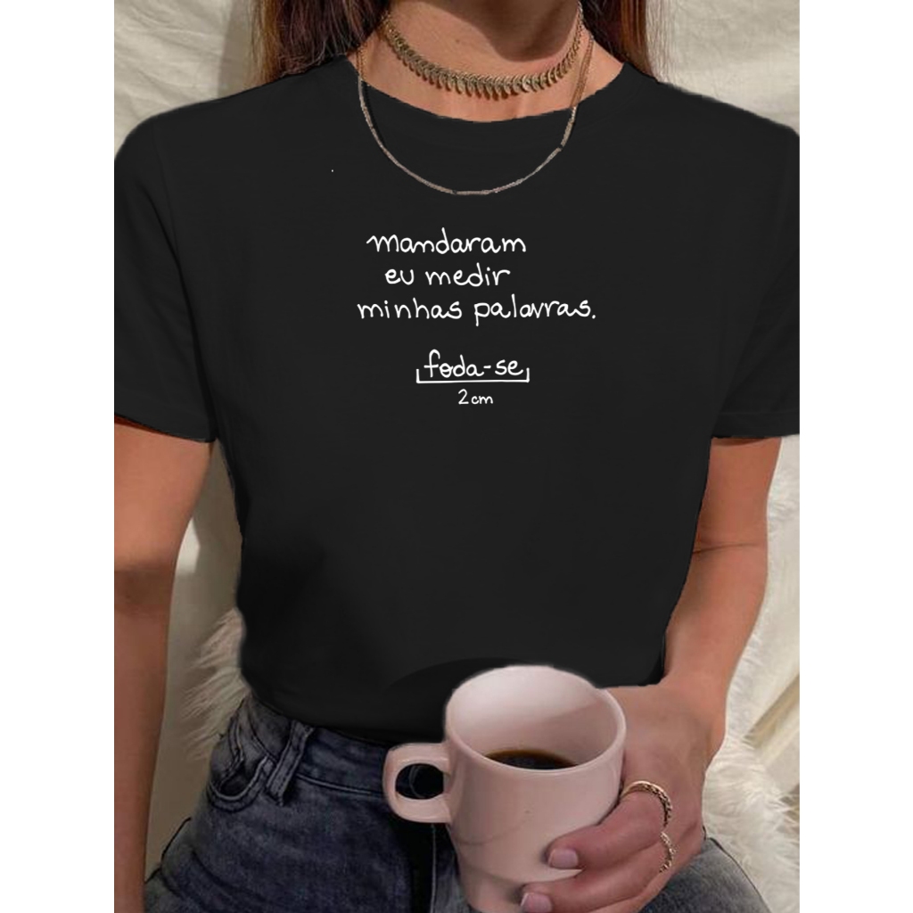 Camiseta Babylook Tshirt Feminina Mandaram Medir Minhas Palavras Frases Engraçadas 100% Algodão