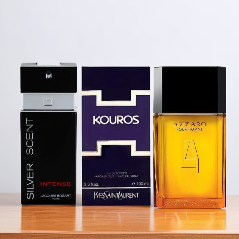 KIT 3 PERFUMES MASCULINOS KOUROS SILVER SCENT AZZARO 100ML MELHOR QUALIDADE IMPORTADOS