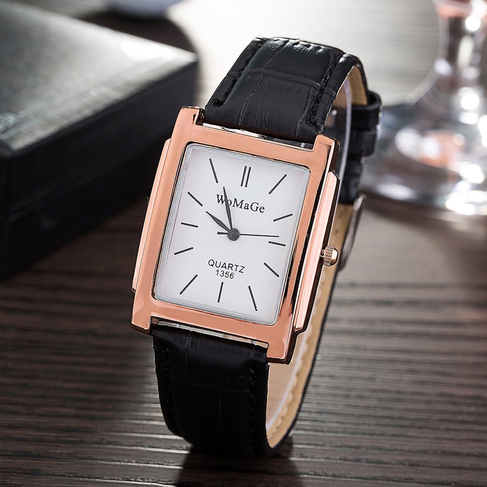 Relógio De Pulso Unissex Clássico Quadrado Com Pulseira De Couro Simples