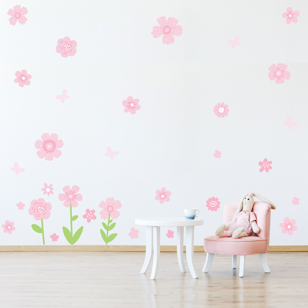 Adesivo De Parede Decorativo Borboletas Floral Raminhos Flores Rosa Quarto Infantil Menina