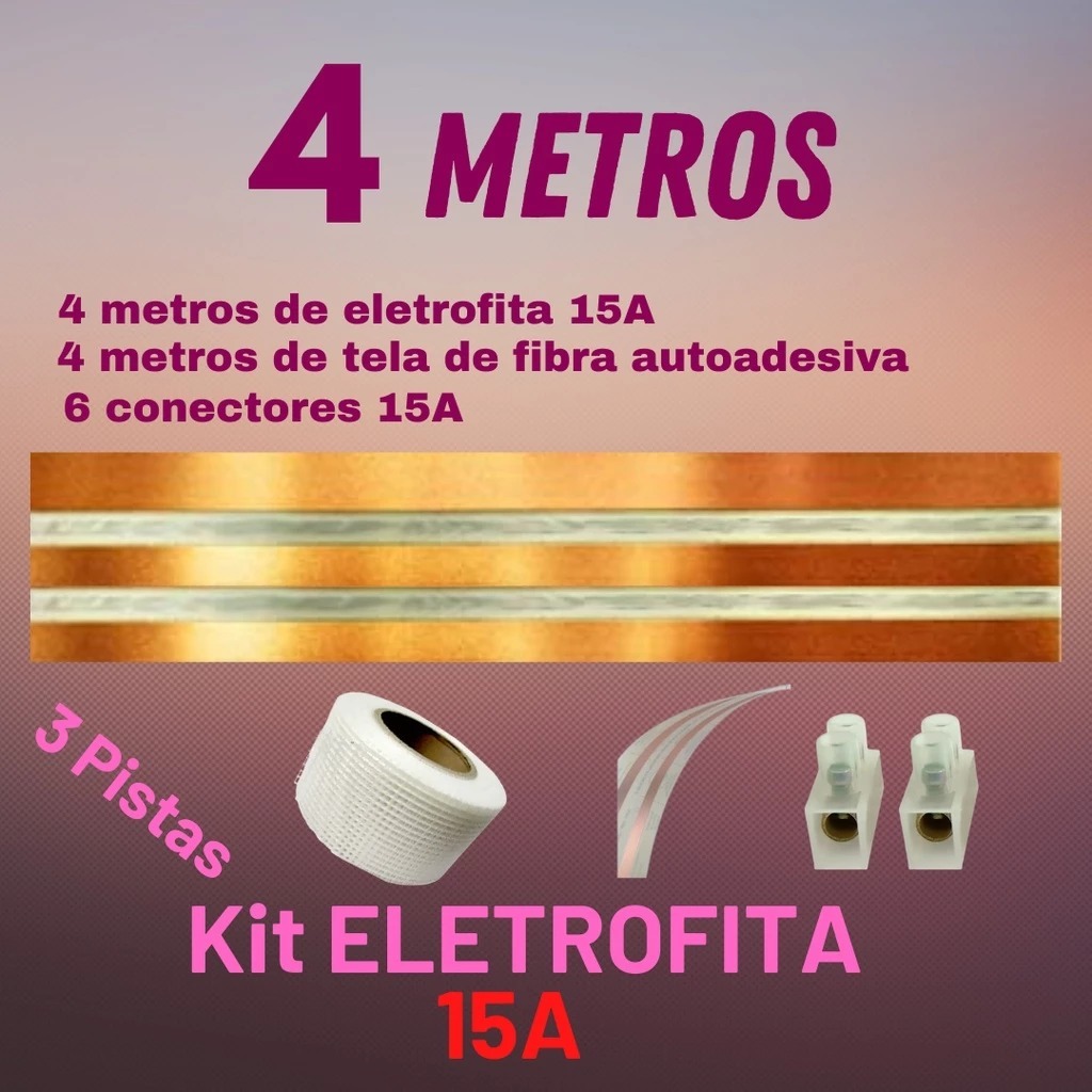 Kit Eletrofita 3 Pistas 15A/750V Fita Elétrica Adesiva 1 a 5 Metros