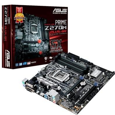 Placa-Mãe ASUS p/ Intel LGA 1151 mATX PRIME Z270M-PLUS/BR 4x DDR4; CrossFireX, 2x M.2,1x Saída DVI-D, 1x Saída D-Sub, 1x HDMI, Edição Gamer