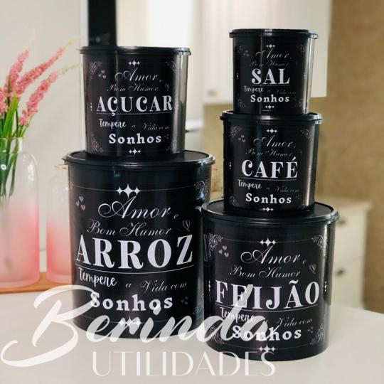 KIT PARA MANTIMENTO 5 PEÇAS PRETO COM TAMPA BRANCA