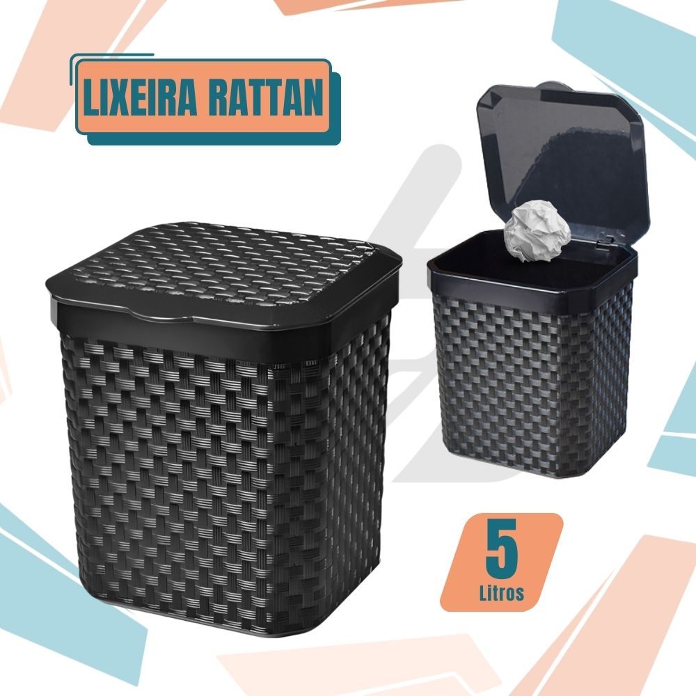 Lixeira Cesto Rattan 5 Litros Preta Com Tampa Cozinha Banheiro Lixeira Pia Muliuso
