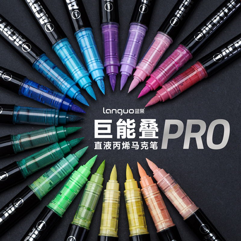 LanGuo Conjunto De Marcadores De Tinta Acrílica De Ponta Dupla , 12/24/48 Cores , Canetas De Desenho De Artista Profissi