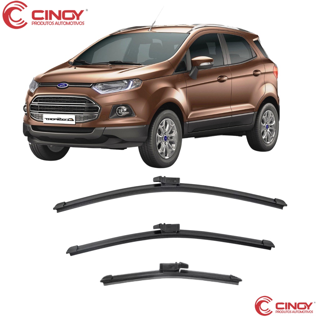 Kit 3 Palhetas Ford Ecosport Limpador de Parabrisa Dianteiro + Traseiro Ano 2013 2014 2015 2016 2017