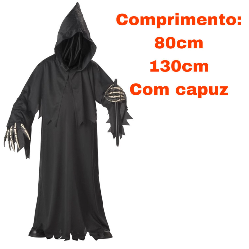 Capa com Capuz Preto para Fantasia de Halloween Capa de Bruxa