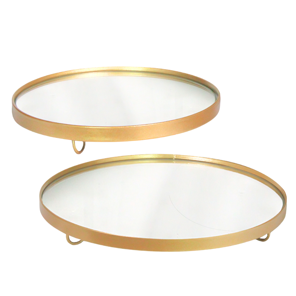 Par de bandejas redonda baixa espelhada Doceira decorativa suporte para doces e salgados