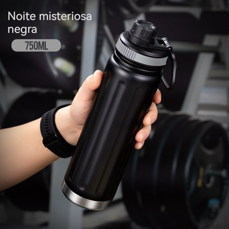 Garrafa Térmica 2 em 1 Canudo e Abertura Para Beber Com Parede Dupla Fitness Esportes Aço Inox 550ml Ou 800ml
