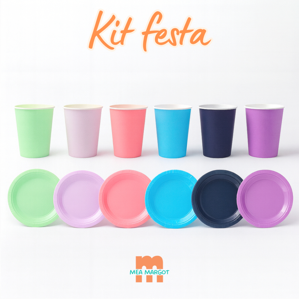 Envio Rápido - Kit 20 ou 40 Copos e Pratos Candy Color Festa Infantil e Aniversário