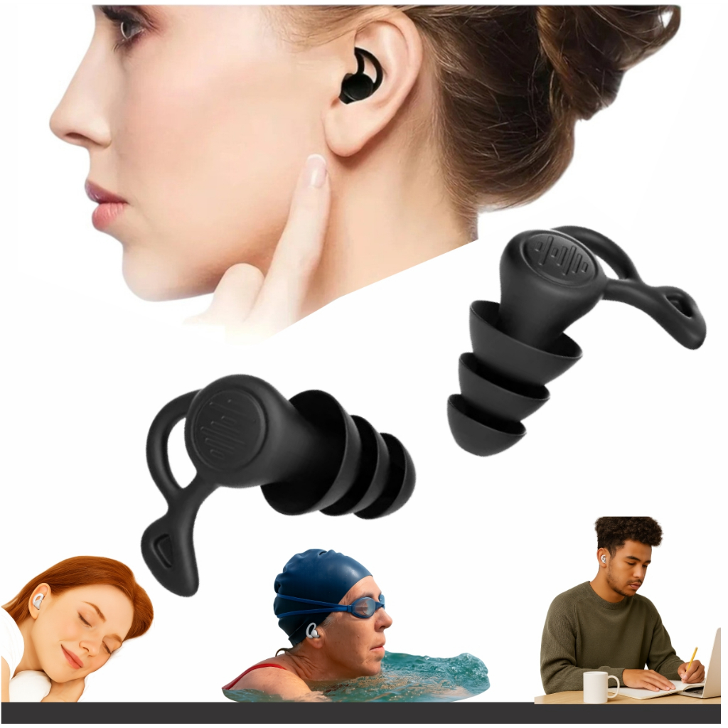 Tampão De Ouvido 3 Camadas Protetor Auricular Antiruído Dormir Natação