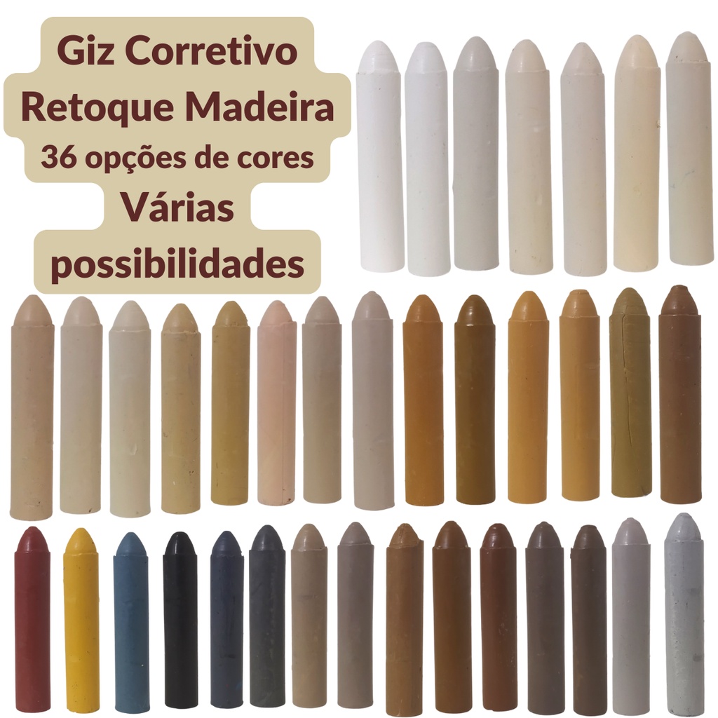 Giz Corretivo 24 Cores Mdf Mdp Madeira Retoque Reparo Marcenaria Móveis Tira Riscos Piso Laminado Portas
