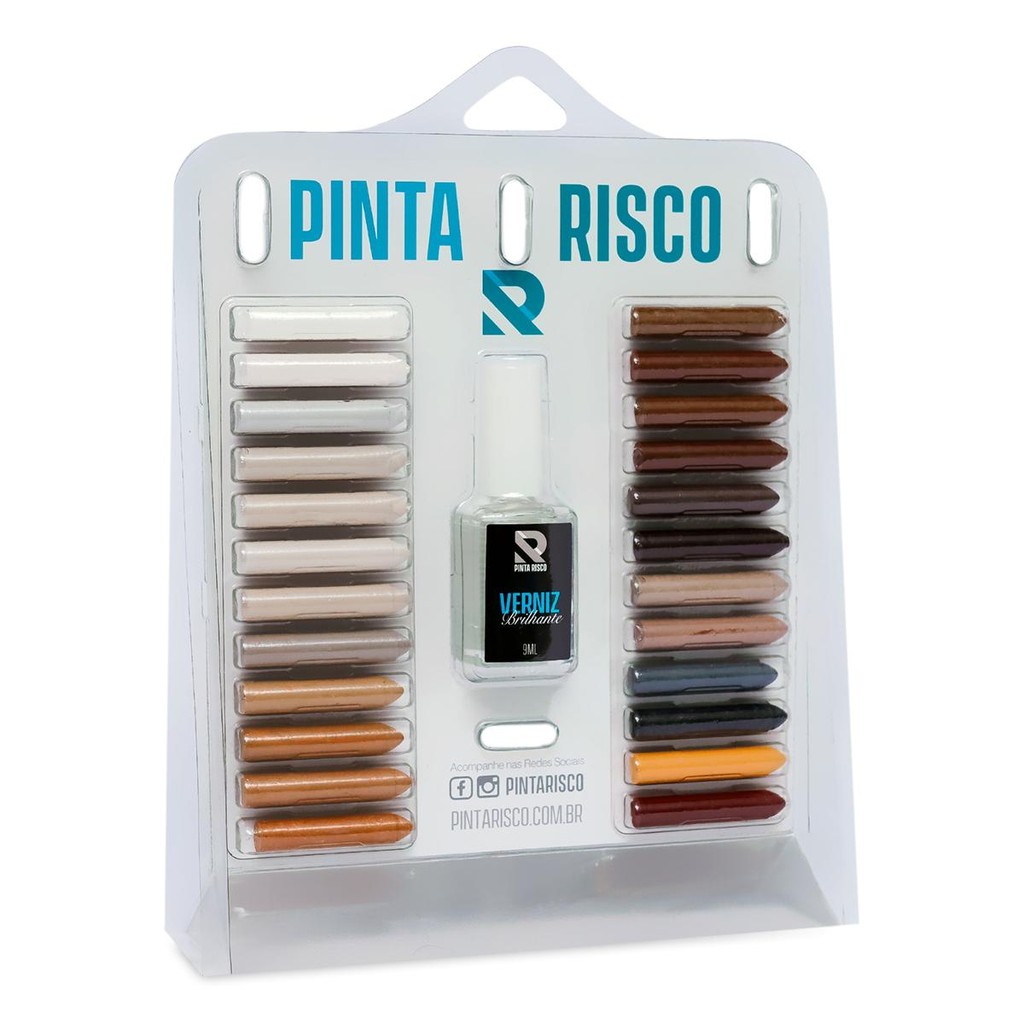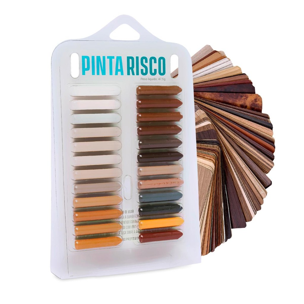 Kit Giz 24 cores Reparo Móveis Madeira Mdf Mdp Verniz Brilho Retoque Tira Riscos Piso Laminado Porta