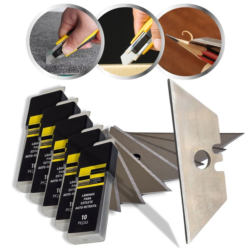 Kit Jogo Lâmina Trapezoidal Estilete Auto Retrátil 50 Pç Profissional