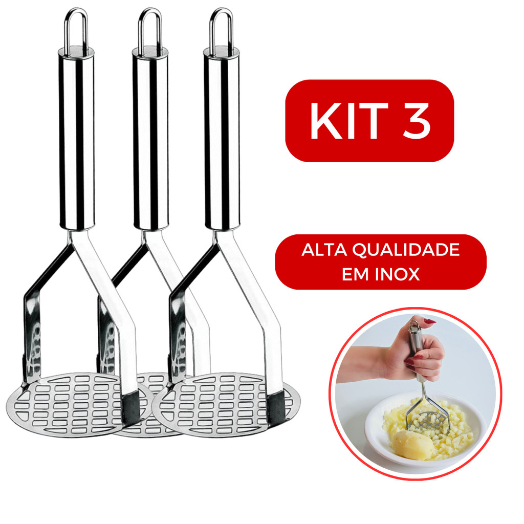 Amassador de Batata Inox Profissional - Escolha sua Quantidade (1, 2 ou 3) Purê Perfeito Sem Complicação