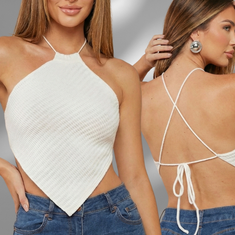 Top Lenço em Tricot Modal Com Amarração Costas Cropped Feminino Premium Moderno Verão Veste 36 ao 42