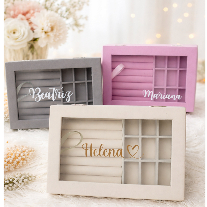 Porta Joias com Tampa de Vidro em Veludo Personalizado Presente Caixa Organizador