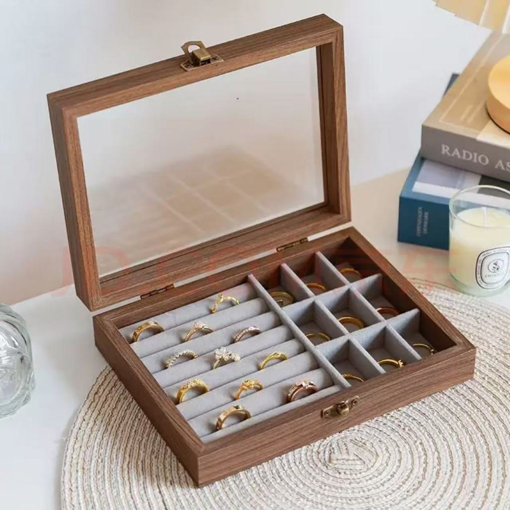 Porta jóias pequeno ou grande de veludo com tampa de vidro/Porta Joias Tampa Vidro Organizador Veludo Divisória Fecho