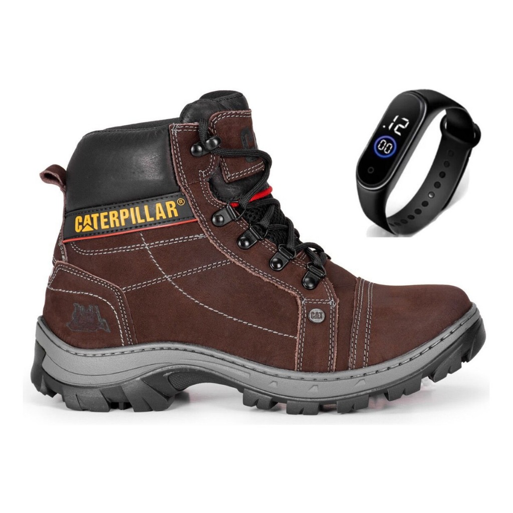 Bota Coturno Caterpillar Original Couro Legitimo Confortável Resistente + Palmilha Gel + Relógio