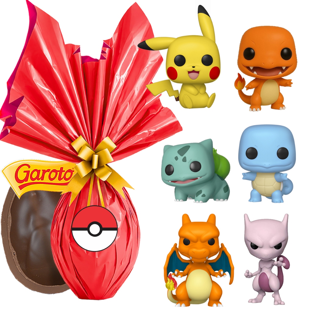 Kit Ovo de Páscoa Infantil 250gm + Pelúcia Pokemon Pikachu Charmander Squirtle Bulbassaur Eevee 25cm ENVIADO NO ISOPOR