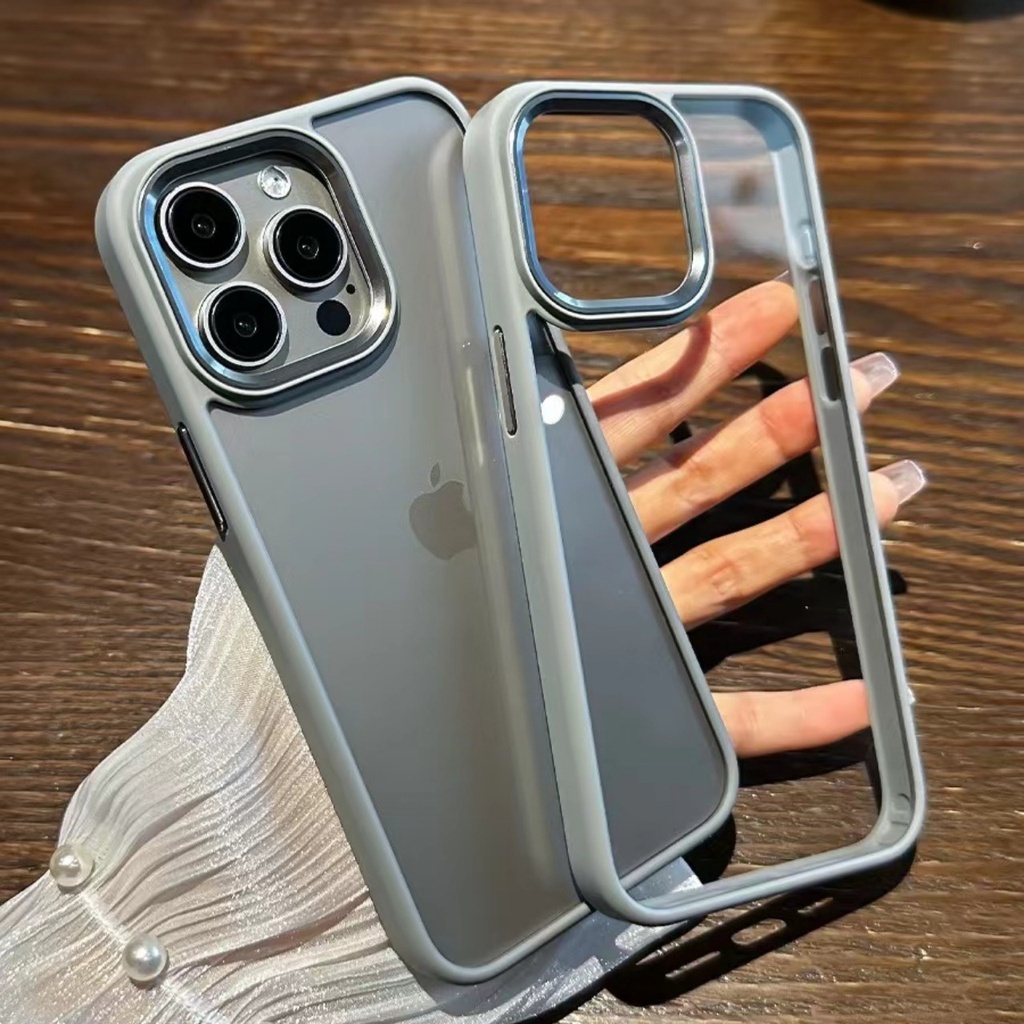 Lente De Metal De Luxo Caixa De Telefone Cinza Titânio Para IPhone 15 Pro Max 11 12 13 14 Silicone Edge Protetor De Câmera Transparente À Prova De Choque