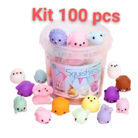 KIT 100 Pç Bichinhos Mochi Macio De Apertar Alivio Estresse Fidget