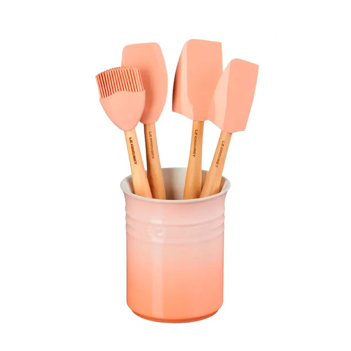 Kit 03 Espátulas, 01 Pincel e 01 Porta Utensílios 1,1 L Pêssego Peche Le Creuset