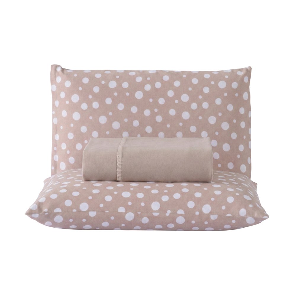 Jogo de Lençol Polly Casal 3 Peças Malha 100% Algodão Estampado Bolinhas - Bege